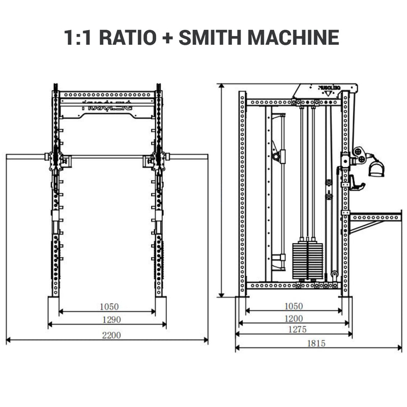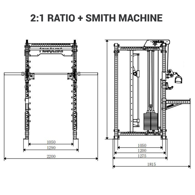 • With Smith Machine: W220cm (smith bar width) 129cm (rack width) × D127.5cm × H – Customisable